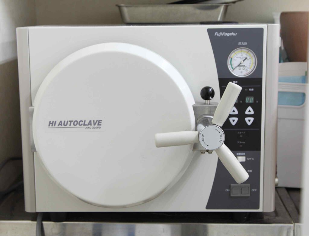 特に院内感染予防には細心の注意を払っております。患者様が清潔な治療を受けられるように滅菌消毒を行っております。